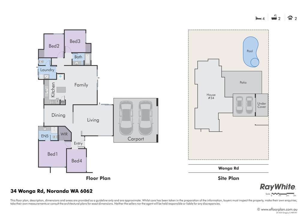 “Floor plan and site plan of 34 Wonga Road, Noranda”
