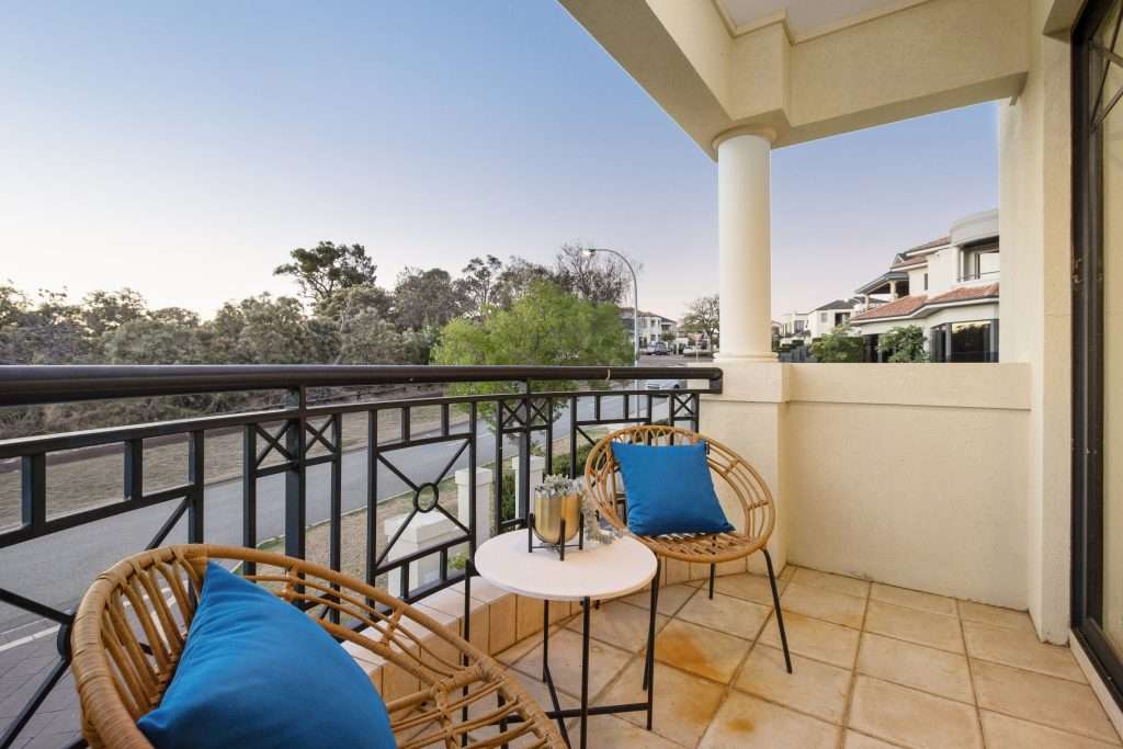 Stepping out from the entertainment area, the upstairs balcony offers sweeping views of the park directly opposite the home. This serene outlook creates a perfect backdrop for morning coffee or evening drinks, providing a tranquil setting to enjoy the outdoors without leaving the comfort of your home.